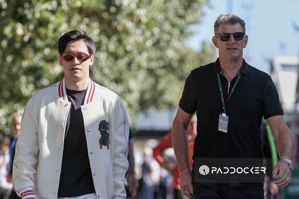 MELBOURNE, AUSTRALIA – MARCH 21: Zhou Guanyu of China and Stake F1 Team Kick Sauber and Graeme Lowdon arrive at the track during previews ahead of the F1 Grand Prix of Australia at Albert Park Circuit on March 21, 2024 in Melbourne, Australia.(Photo by Qian Jun/MB Media/Getty Images)