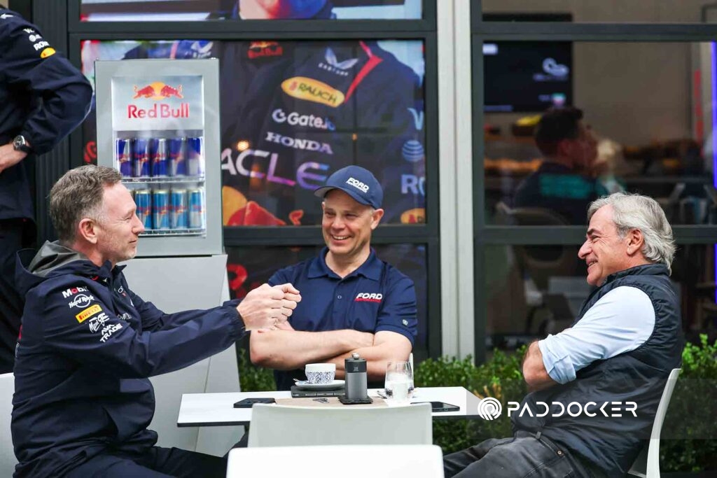 MELBOURNE, AUSTRALIA – MARCH 16: Christian Horner of Great Britain and Oracle Red Bull Racing talks with Carlos Sainz and Mark Rushbrook(Ford Performance) during Race ahead of the F1 Grand Prix of Australia at Albert Park Circuit on March 15, 2025 in Melbourne, Australia.(Photo by Jin Cheng/Paddocker)
