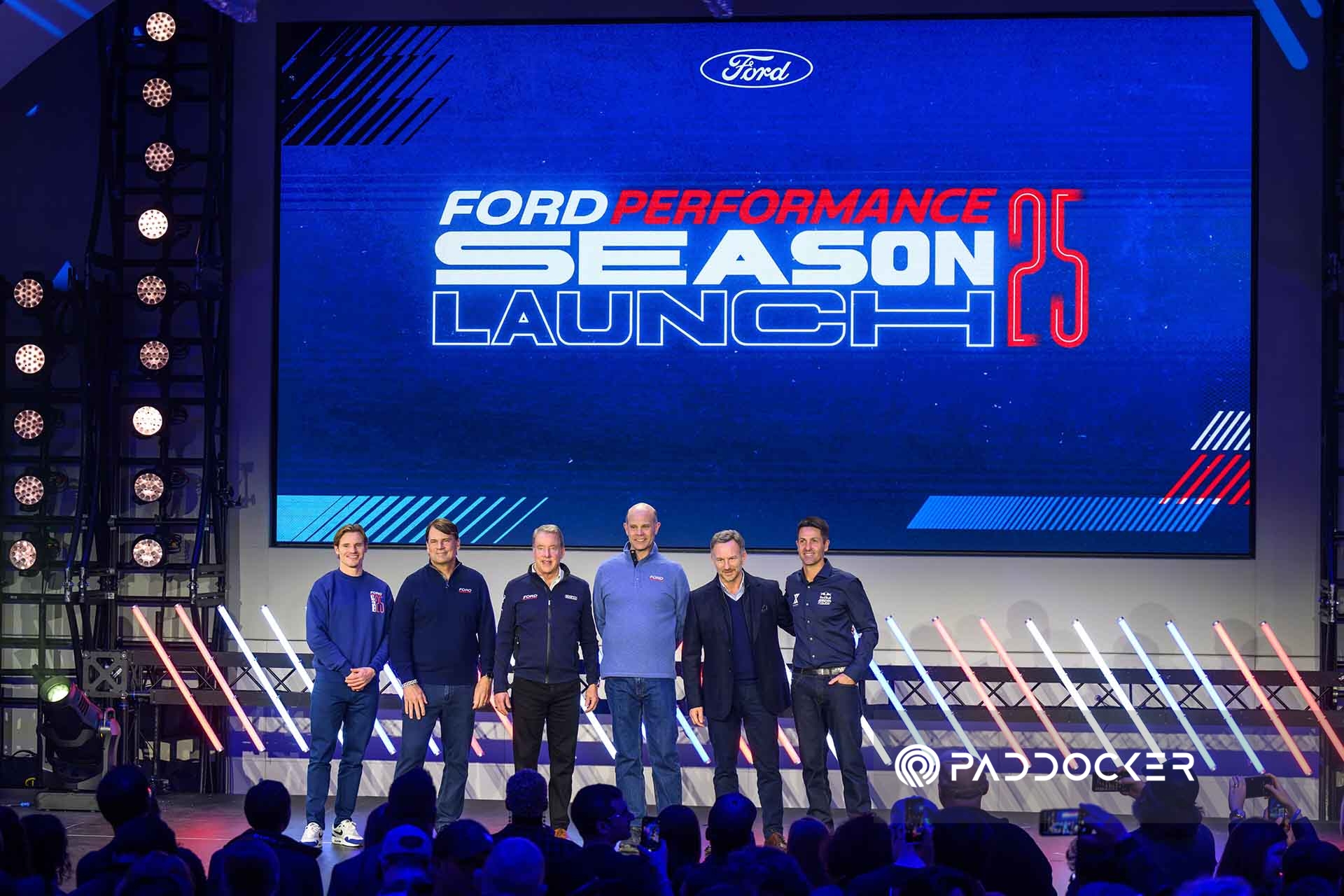 Christian Horner, James Spithill and others at the 2025 Ford Performance Launch on January 30, 2025 (Photo by Wes Duenkel/Red Bull Content Pool)
